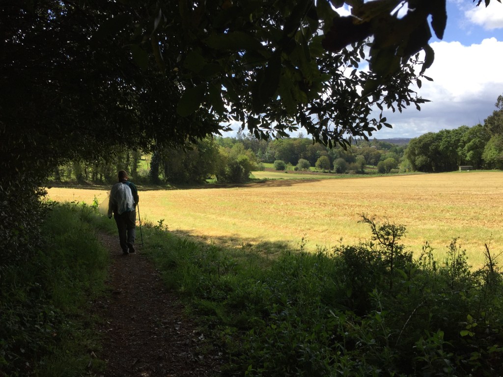 A couple of #bloganuary posts ago, I alluded to an experience my wife and I shared in May 2018–a trip to Spain to walk the 110-kilometer Camino Inglés, one of the many routes of the Camino de Santiago. Our trip began in the northern coastal port of Ferrol, and for the first few days, our route took us through some of the larger cities and towns nearer to the coast, with plenty of hills and forests between them. Some of our walking in those first few days was along highways, but as we moved further to the south, the trail wound through rural backroads and smaller villages. We generally tried to be out and on the trail fairly early in the mornings, and on one of the middle days of our trek the trail markers led us off the road, and onto a path that cut through the countryside between farms.