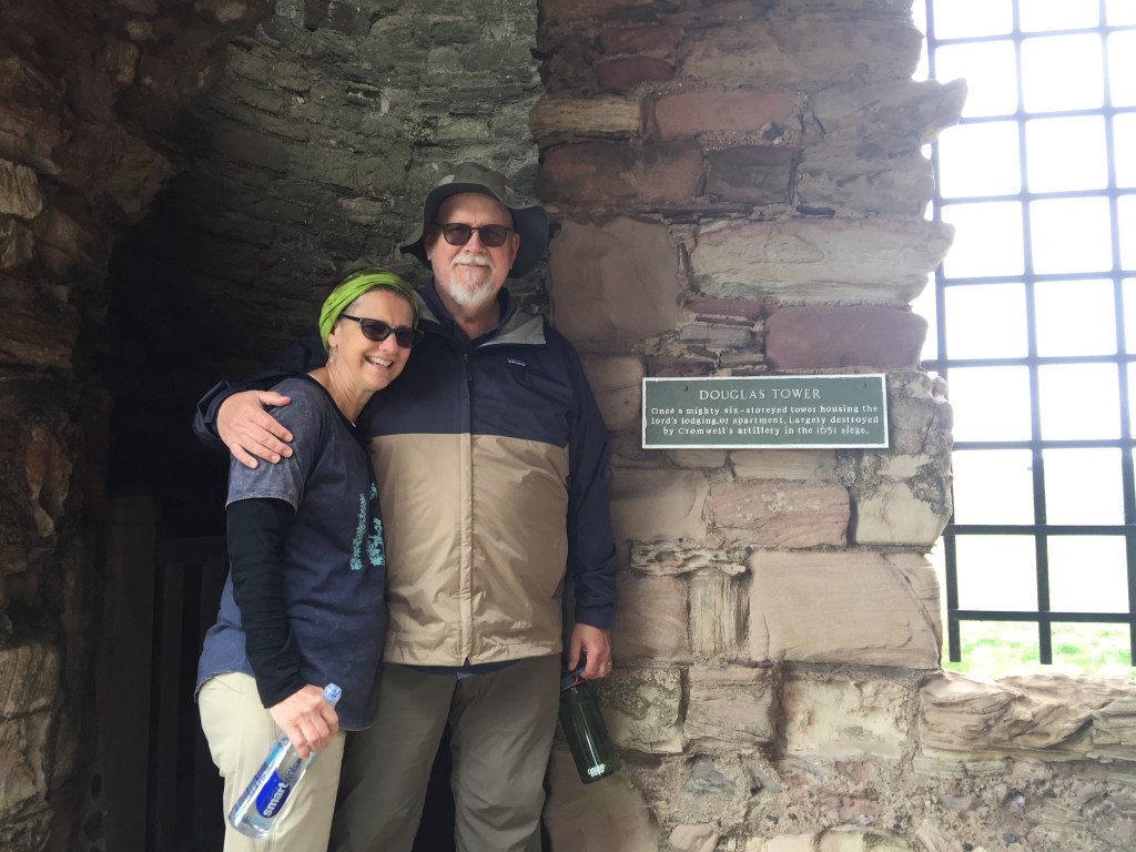 Photo: My wife Carolyn and me in Douglas Tower, part of the ruins of Tantallon Castle in East Lothian, Scotland, 2018.Photo credit: Rebekah Heacock-Jones.